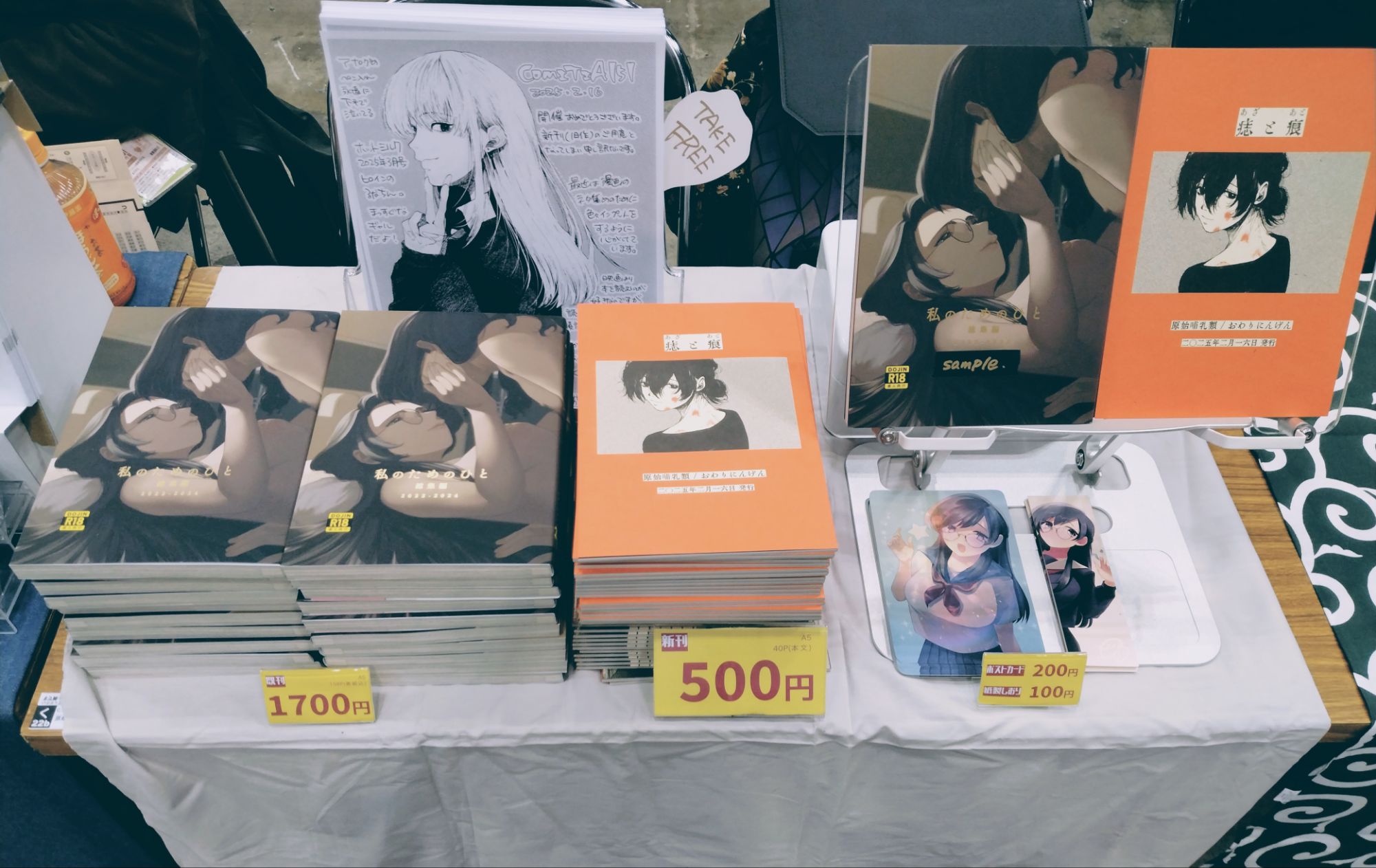 『痣と痕』は20部半ば、『私のためのひと』は10部ちょい手に取っていただけました。
